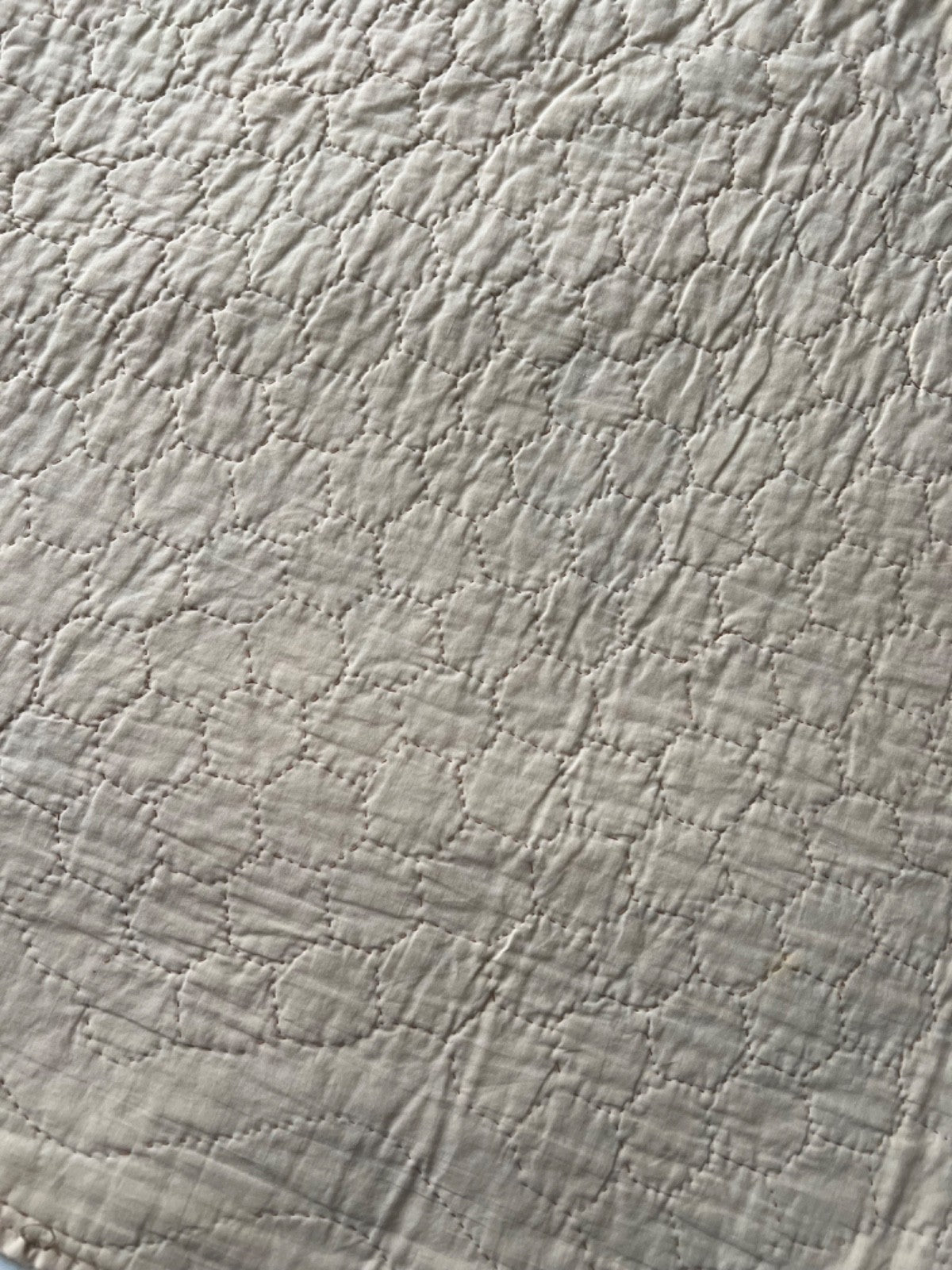 This is Mabel's favorite & the one she put on her bed for her birthday every year. Some of her most sacred fabrics are included in the flowers & it was pieced & quilted by Mabel, her mother Sarah & Grandmother Ada. There is some wear, as photographed, but this quilt is soft as silk and absolutely stunning.