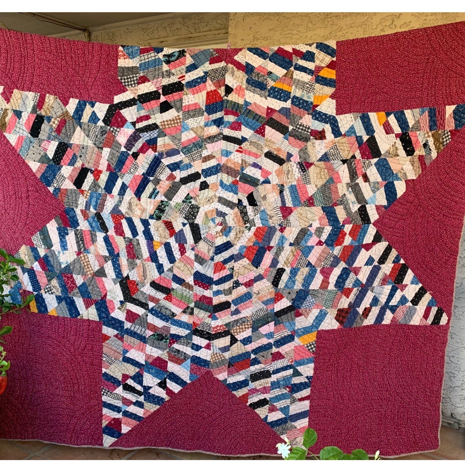 Tough times call for the sale of special things and this one tops the list. 1910 String Long Star quilt in very good condition! Some shattering of the madder brown fabric but a true knockout! I am waiting for the rest of the pictures to upload and I will update!