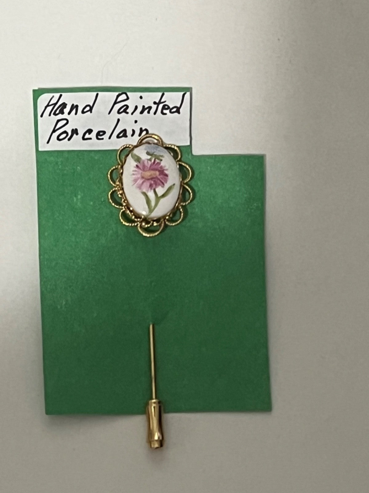 Antique Victorian Hand Painted Porcelain Floral Stick Pin Brooch
