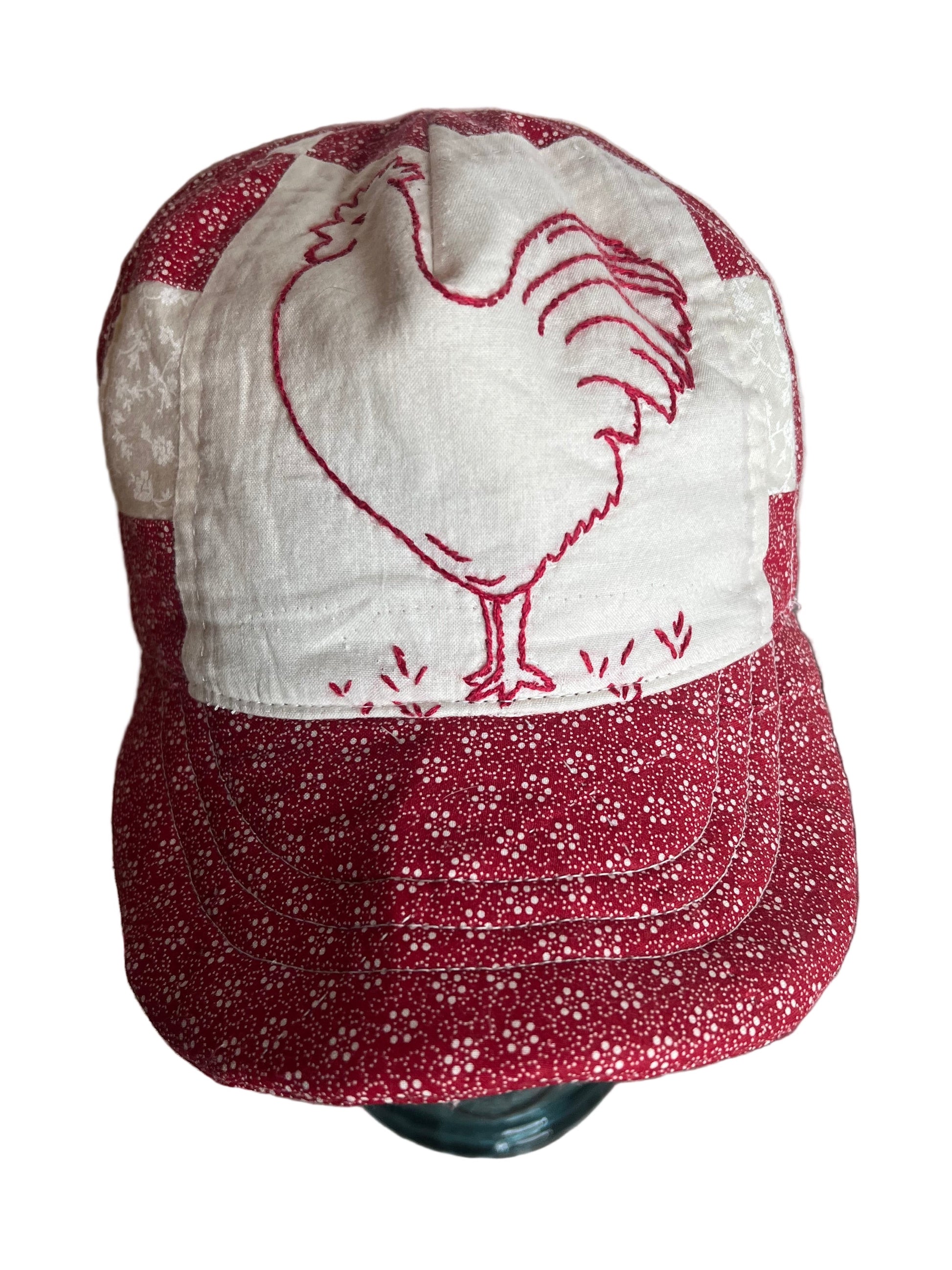 One of a kind & made by me with a beautiful red & white embroidered baby quilt. This gorgeous hat is lined with natural linen & closes with a snapback fastener, making it adjustable to fit most! 3 in this collection.