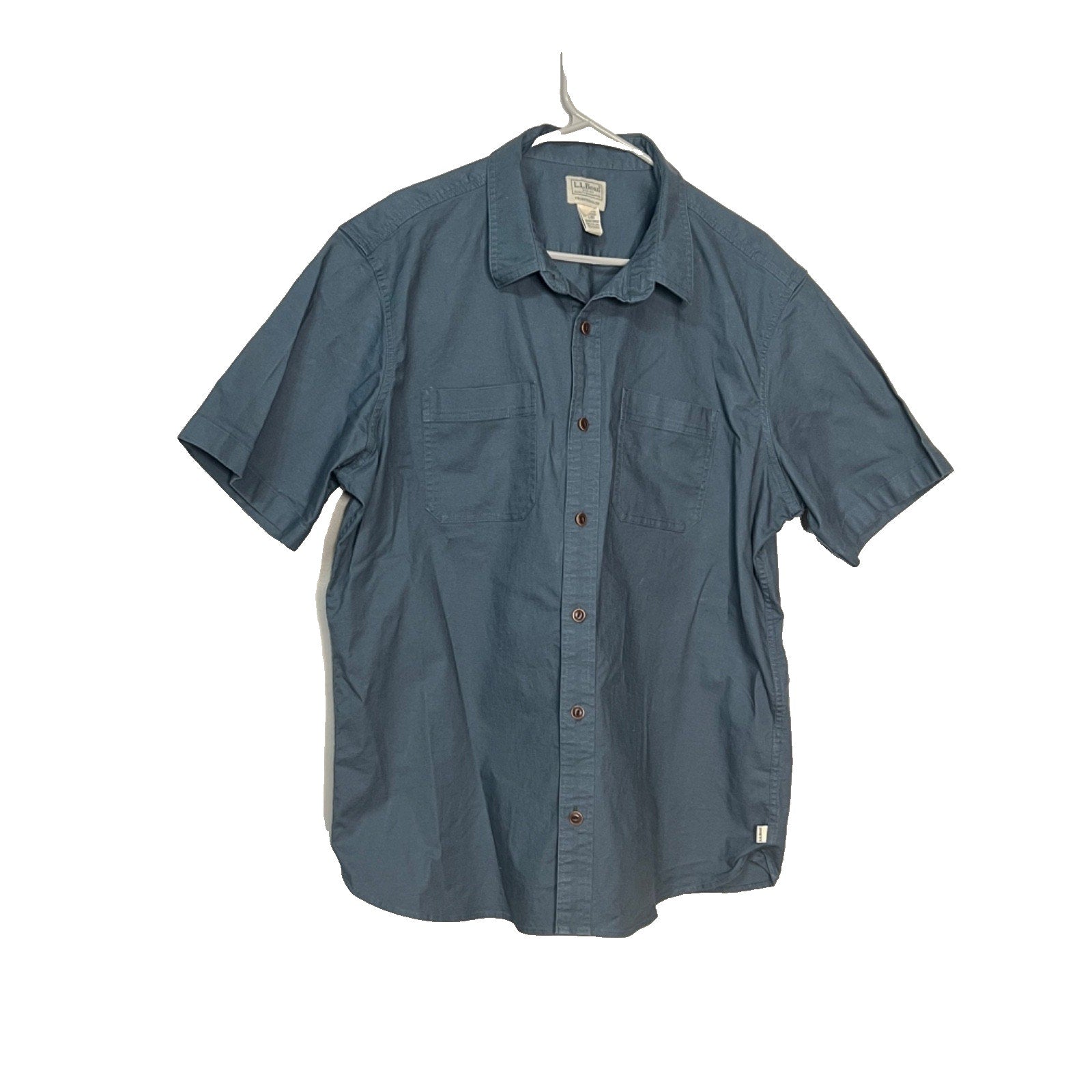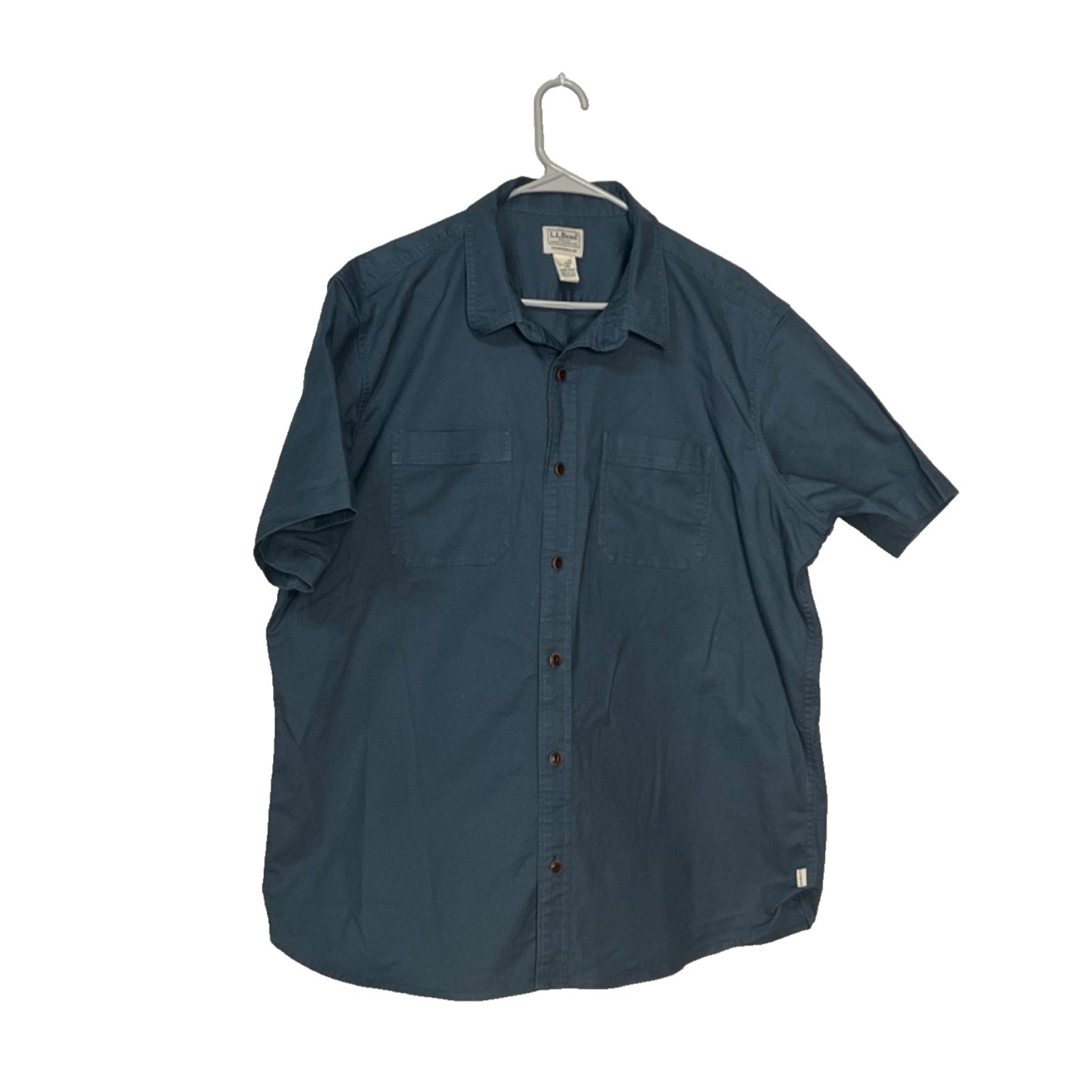 LL Bean Blue Large BeanFlex Twill Shirt Mens Untucked Fit Canvas Slate Blue