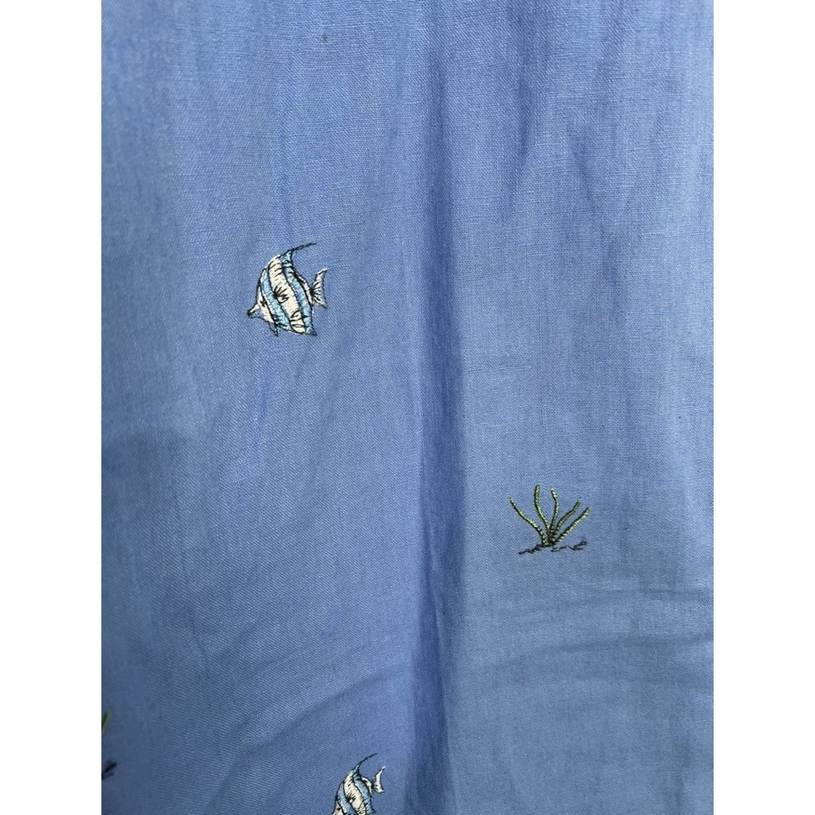 NWT XXL Sun Moda Resort Wear Blue Linen Angel Fish Embroidered Pants Cruise