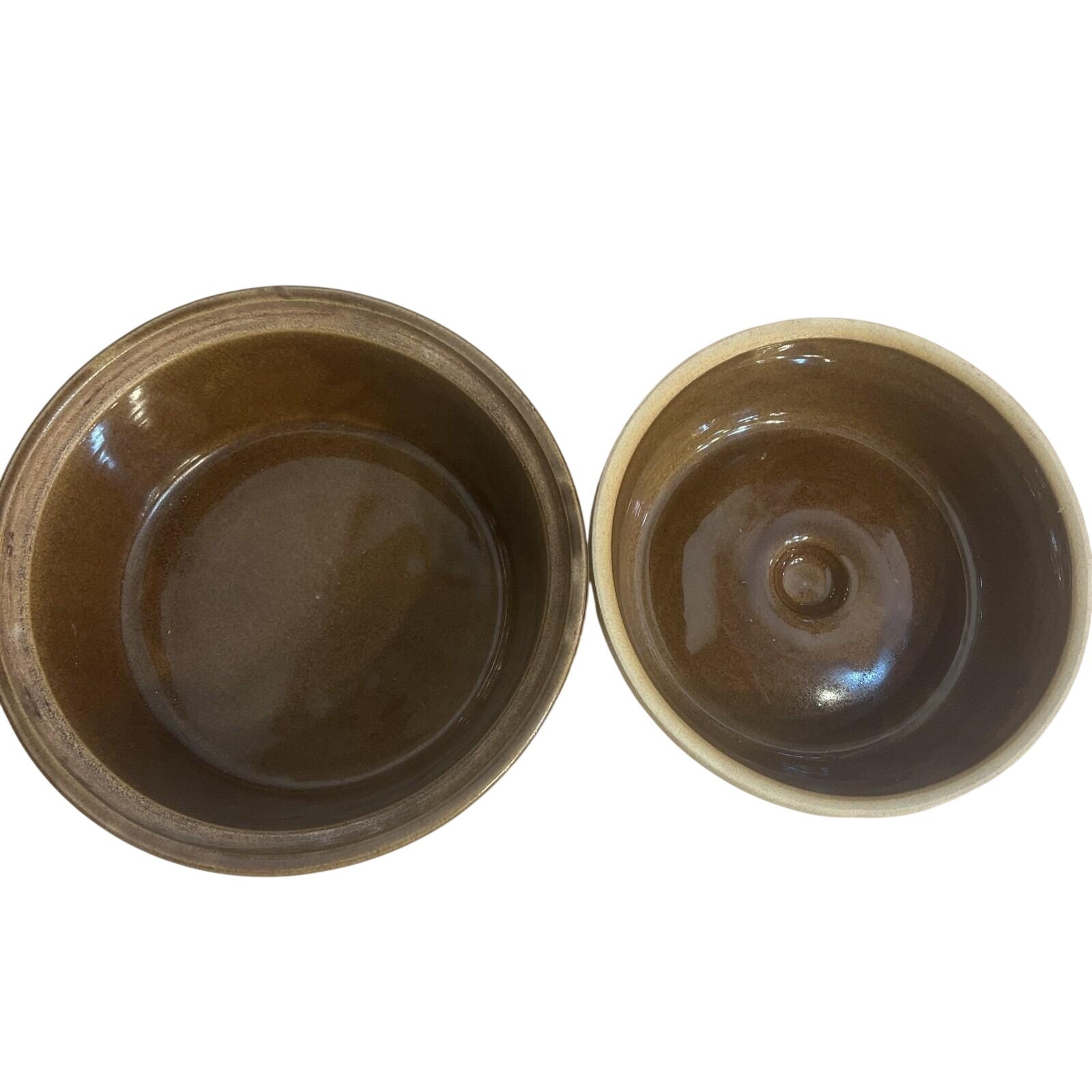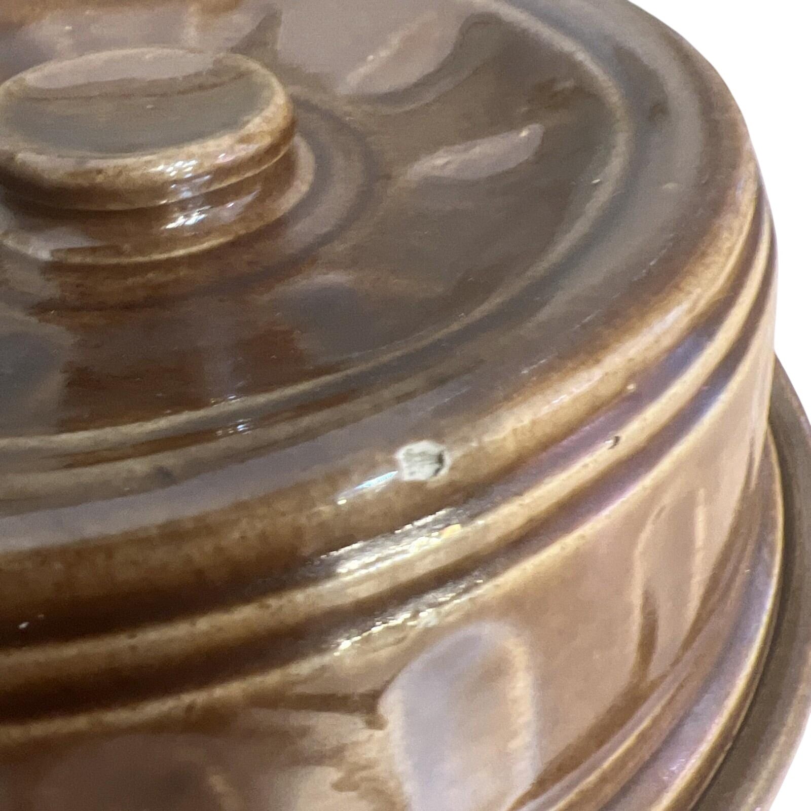 Vintage 2 Qt Brown Glaze Bean Pot Crock Stoneware Dutch Oven marked USA