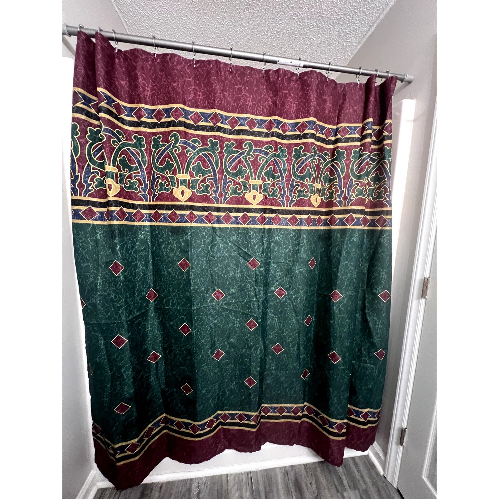 Vintage Amalfi 90S Shower Curtain Y2K Springs Home Green Maroon Gold Art Deco