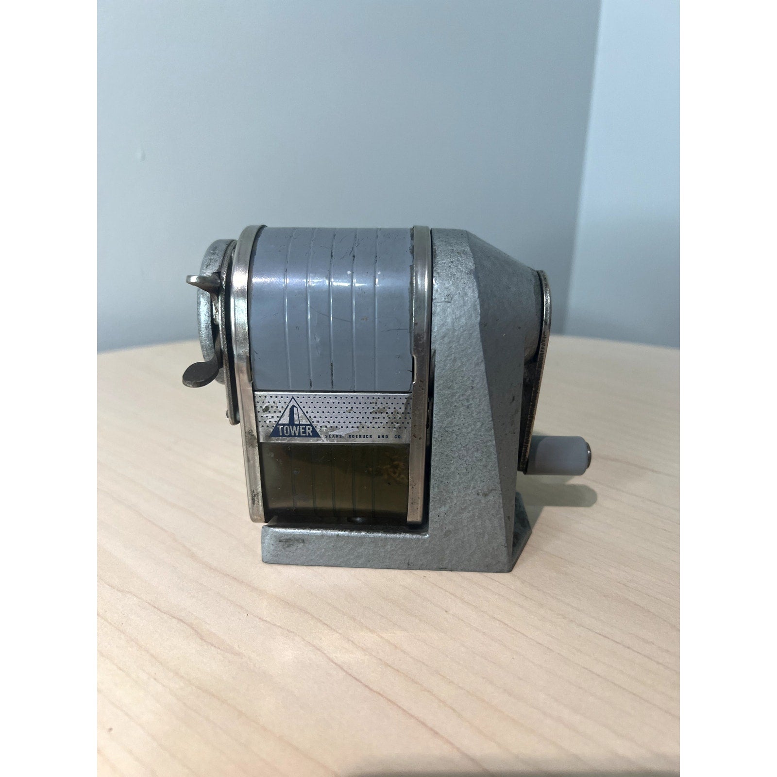 Wonderful & works great! Vintage pencil sharpener by Tower. See photos for details