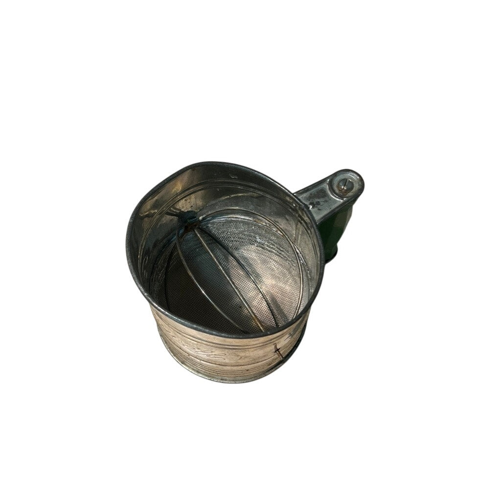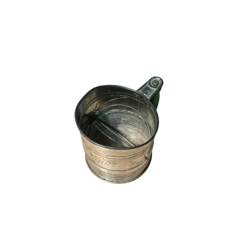 Vintage Bromwell’s 5 Cup Measuring flour Sifter With green turn crank & Handle