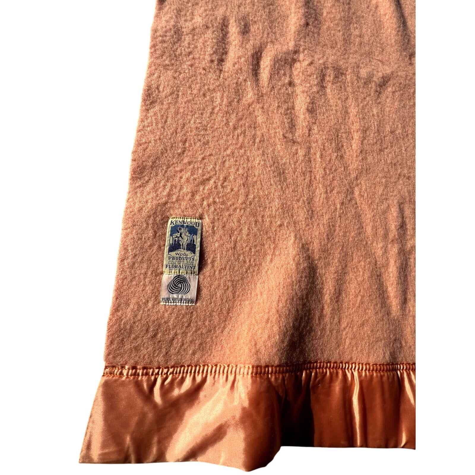 Vintage Kenwood Orange & Yellow Pure Virgin Wool Satin Trim Floraltint Blanket