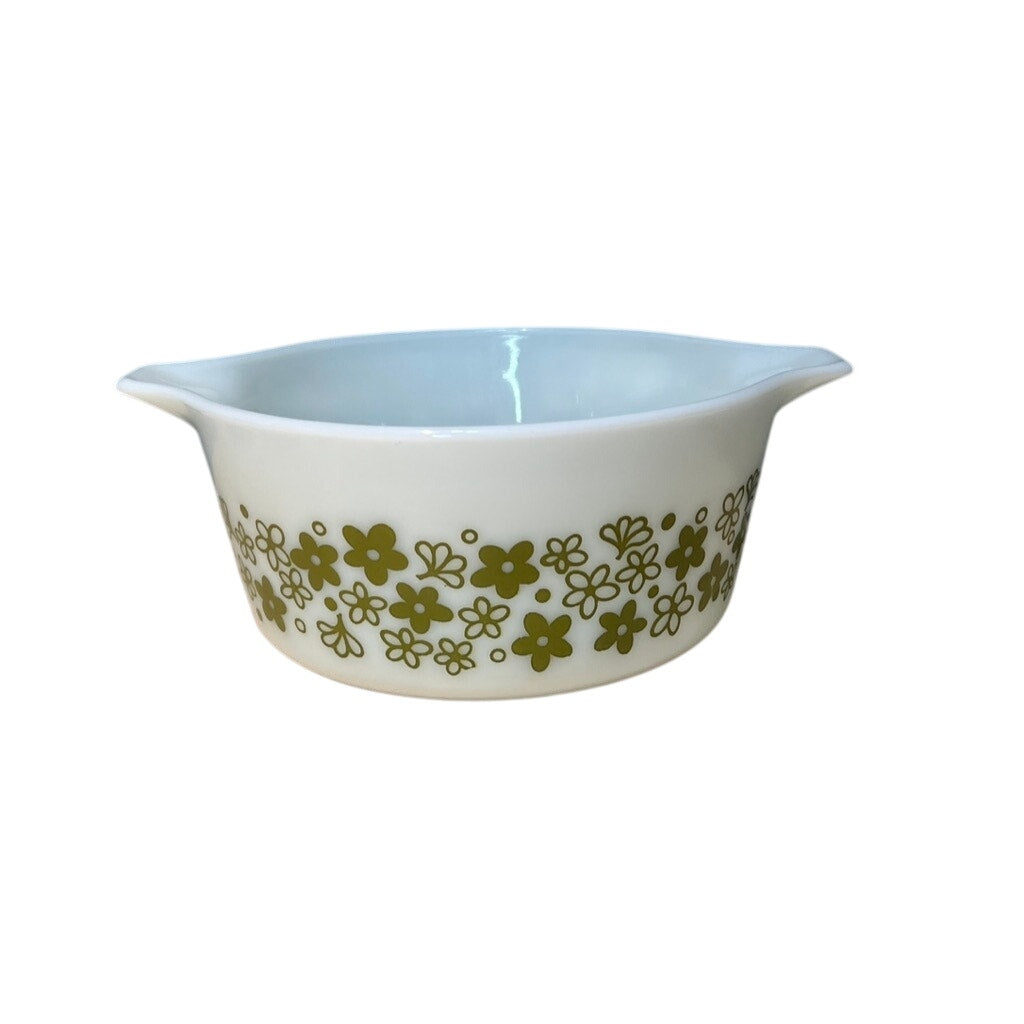 Vintage Pyrex 474-B Crazy Daisy Green Spring Blossom 1 ½ QT CASSEROLE No Lid