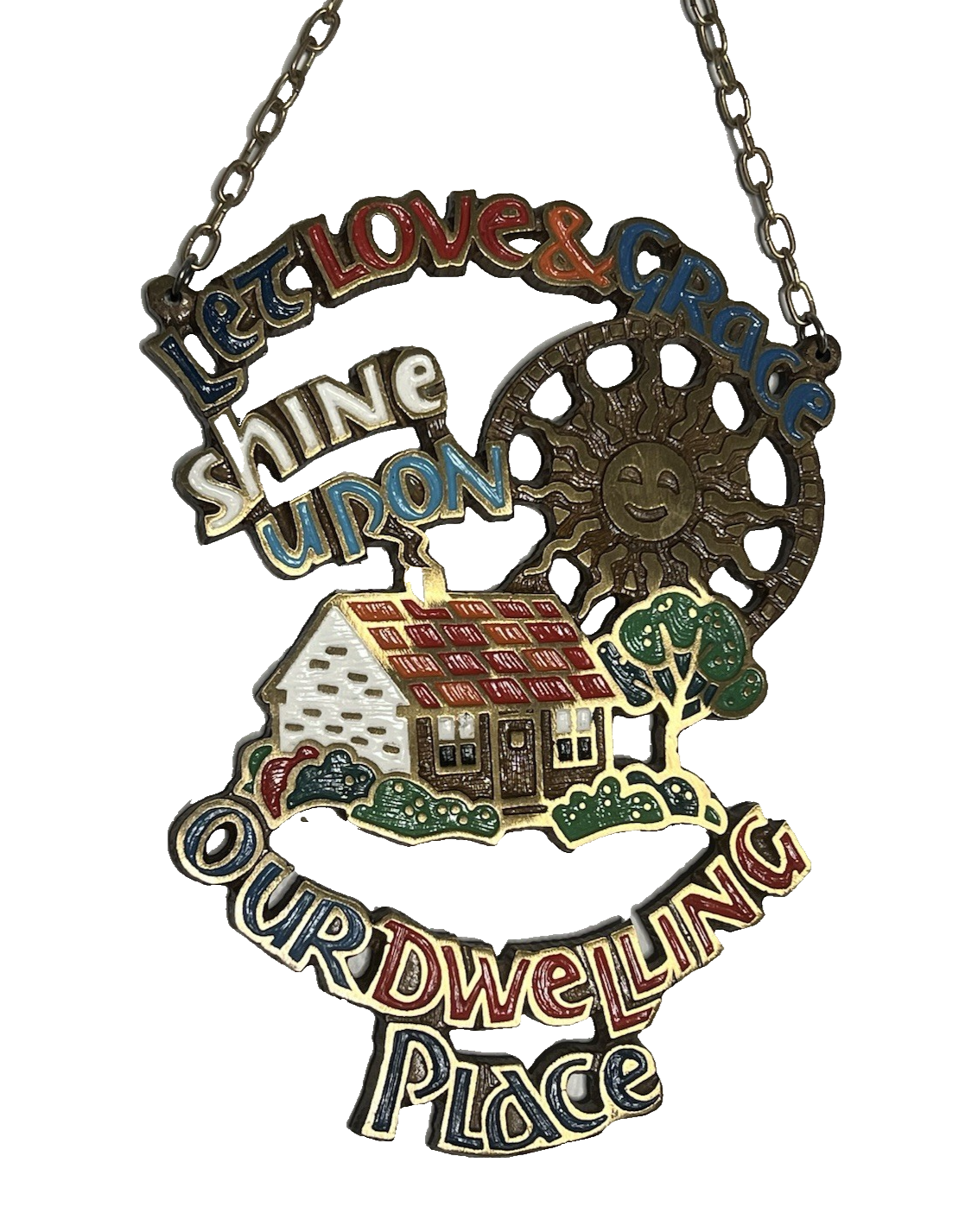 Vintage Terra Sancta Guild Brass Let Love & Grace Enamel Wall Hanging Art