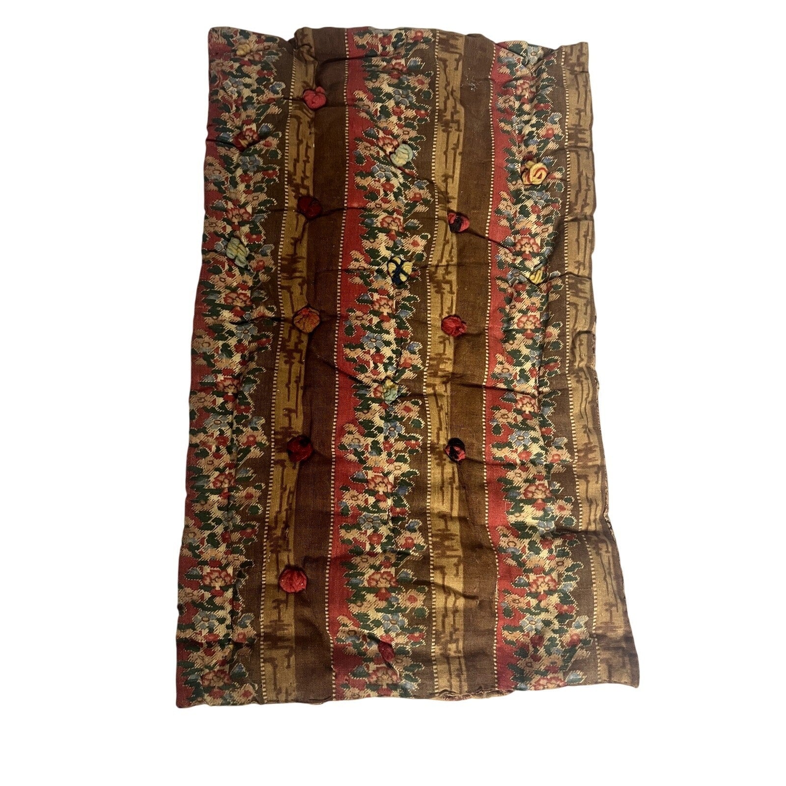 Vintage Wood Baby Cradle with Antique Fabric Mattress & Teddy Bear Decal