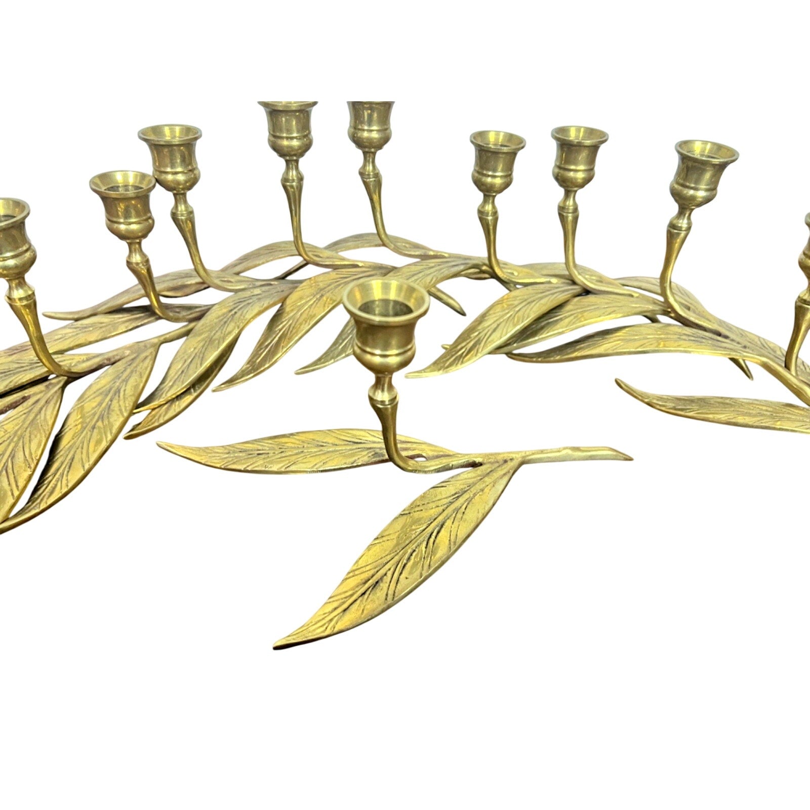 Vtg Brass Candlestick Holders Graduated Set of 12 Leaves Wedding Mantle