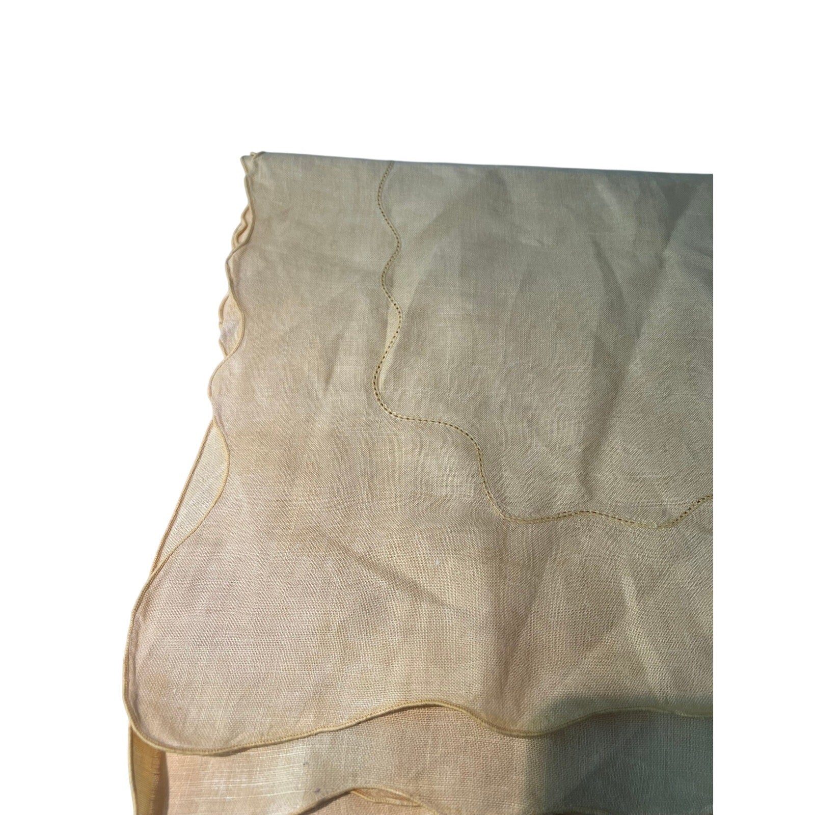 VTG Capri Butter Yellow Belgian Linen Scallop Edge Hemstitch Tablecloth 68x84