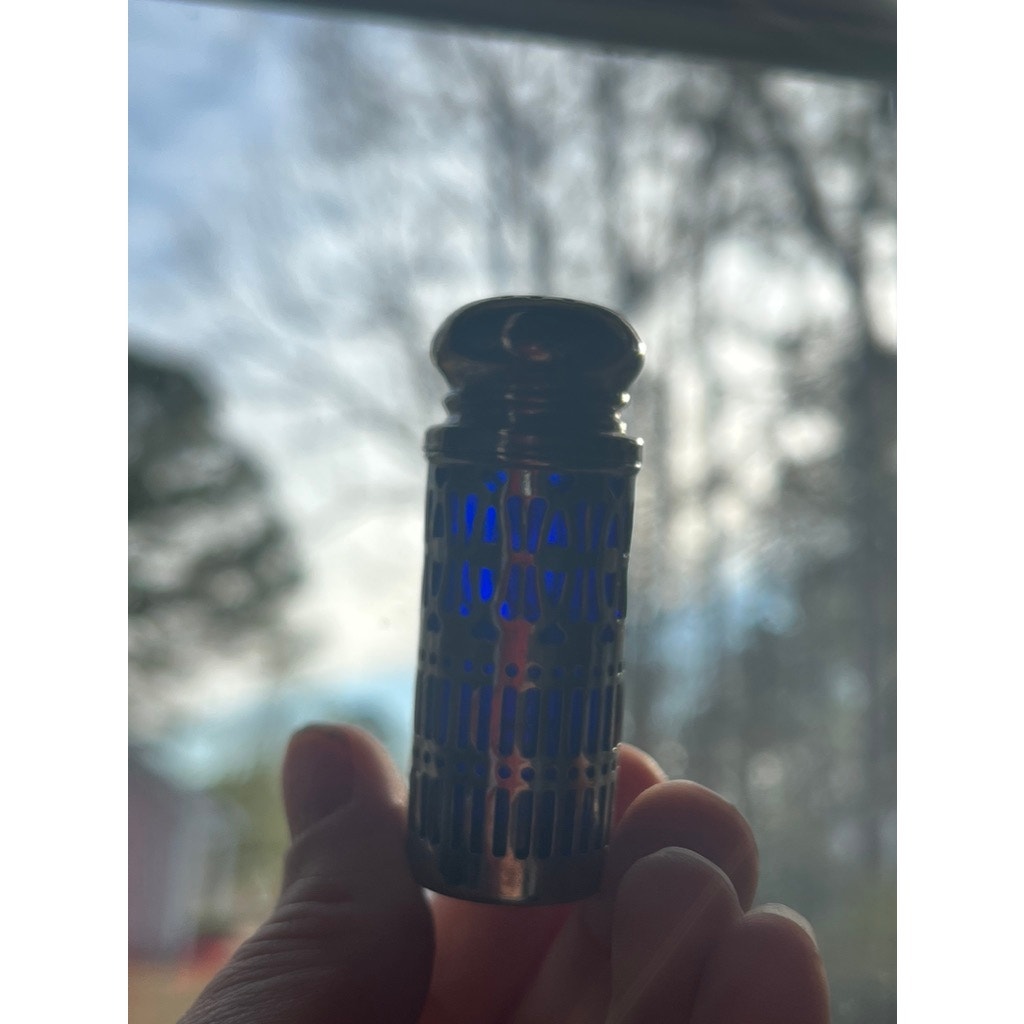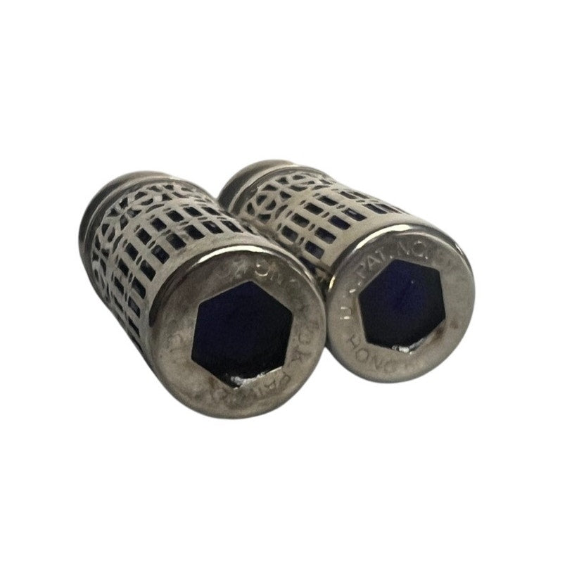 Vtg GODINGER Silver Plate Filagree Hearts Blue Cobalt Glass Salt Pepper Shakers