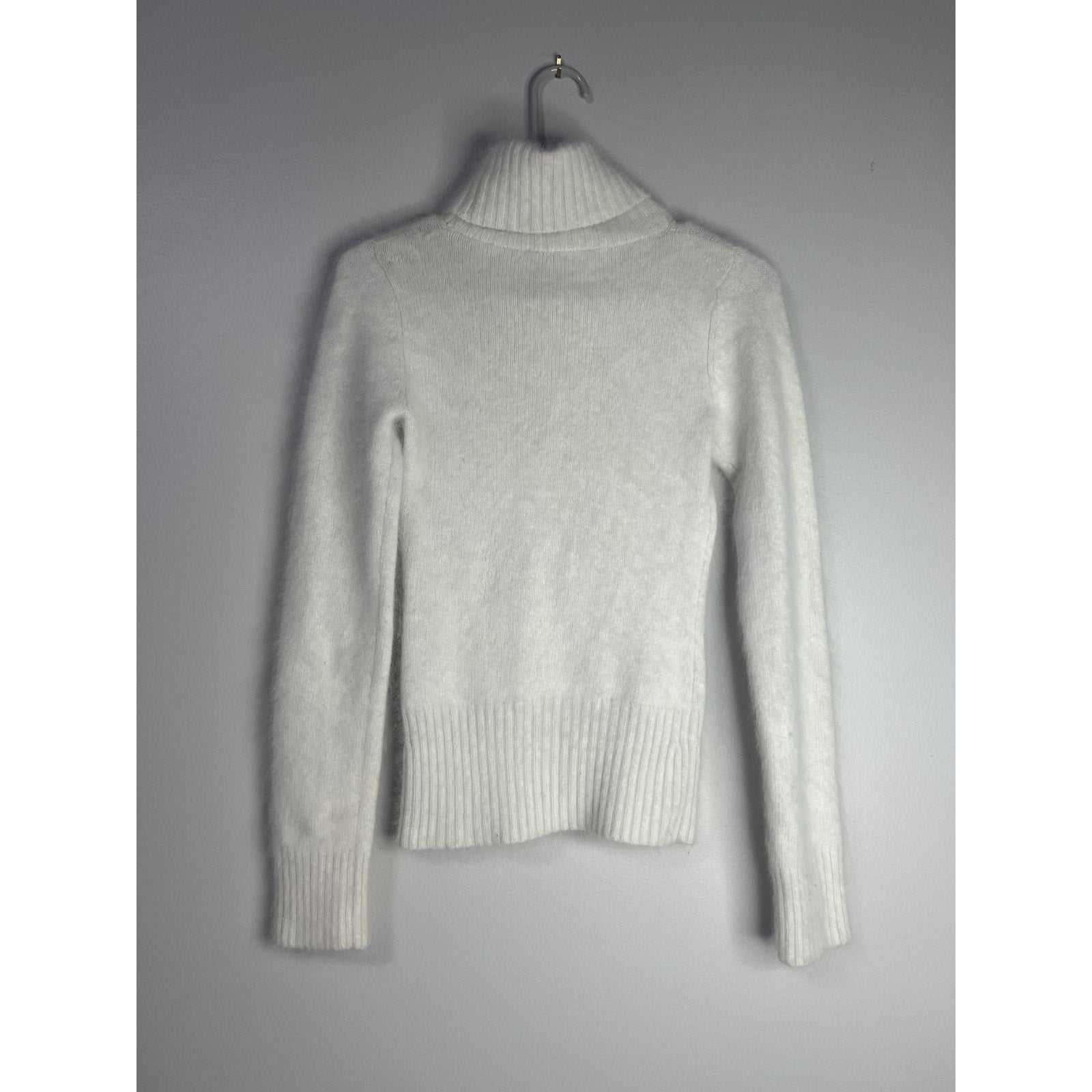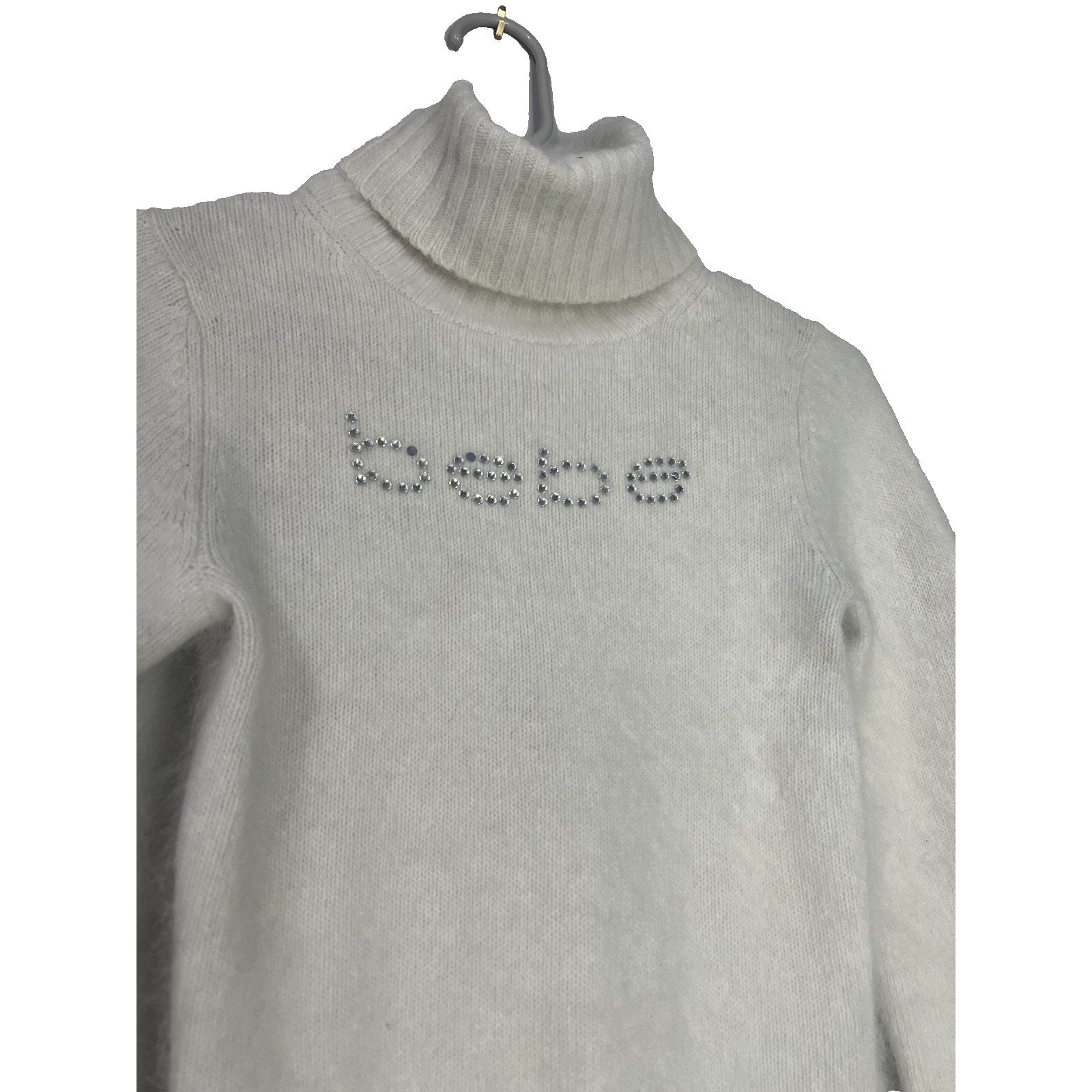 White Y2K Vintage Angora Fur Rhinestone Bebe Logo Small Turtleneck Sweater